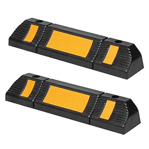 Aufun Hjulstopp för parkering och garage gummiparkering hjulstopp vägledning med gul reflekterande ränder hjul stopp pluggar för bil lastbil husvagn garage 2-pack
