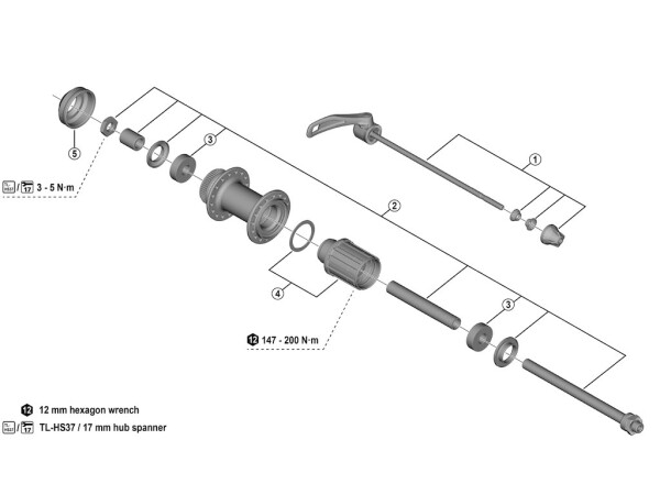 Shimano axel komplett för baknav modell FH-TC500-MS-B/HM-B