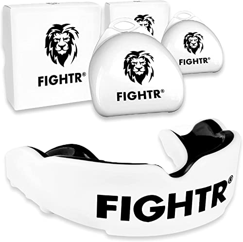 FIGHTR® Premium munskydd – perfekt andning och lätt att anpassa | Sport tandskydd för boxning, MMA, Muay Thai, hockey och kampsport | inkl. hygienlåda, 2 Set, Vit/svart