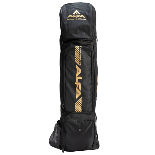 ALFA Jumbo Hockey Stick Kit Bag | Svart, Large | Polyester | Lätt och hållbar | Spacious Main Compartment | Bekväma vadderade remmar | Ventilerade främre fickor