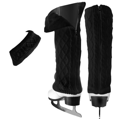 CFHOOAY Benvärmare och pannband set för konståkning hockey skridskoåkning, varm stickad vinter fleece fodrade benvärmare och pannband för balett dans. Ice skridskoåkning tillbehör, Svart lång, Lang