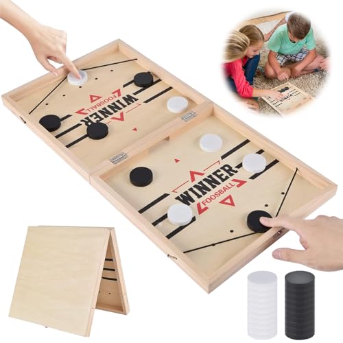Giugio Hockey brädspel, bouncing brädspel, trä snabb sling puck matchningsspel, bouncing brädspel, 2 i 1 interaktion bordhockey katapult, bärbar schackbräde set festspel bord spel