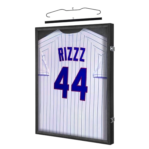 IHEIPYE Jersey displayfodral jersey ram stor skugglåda låsbar med 98 % UV-skydd akryl och hängare för baseball basket fotboll fotboll hockey 2XL sport jersey skjorta, svart