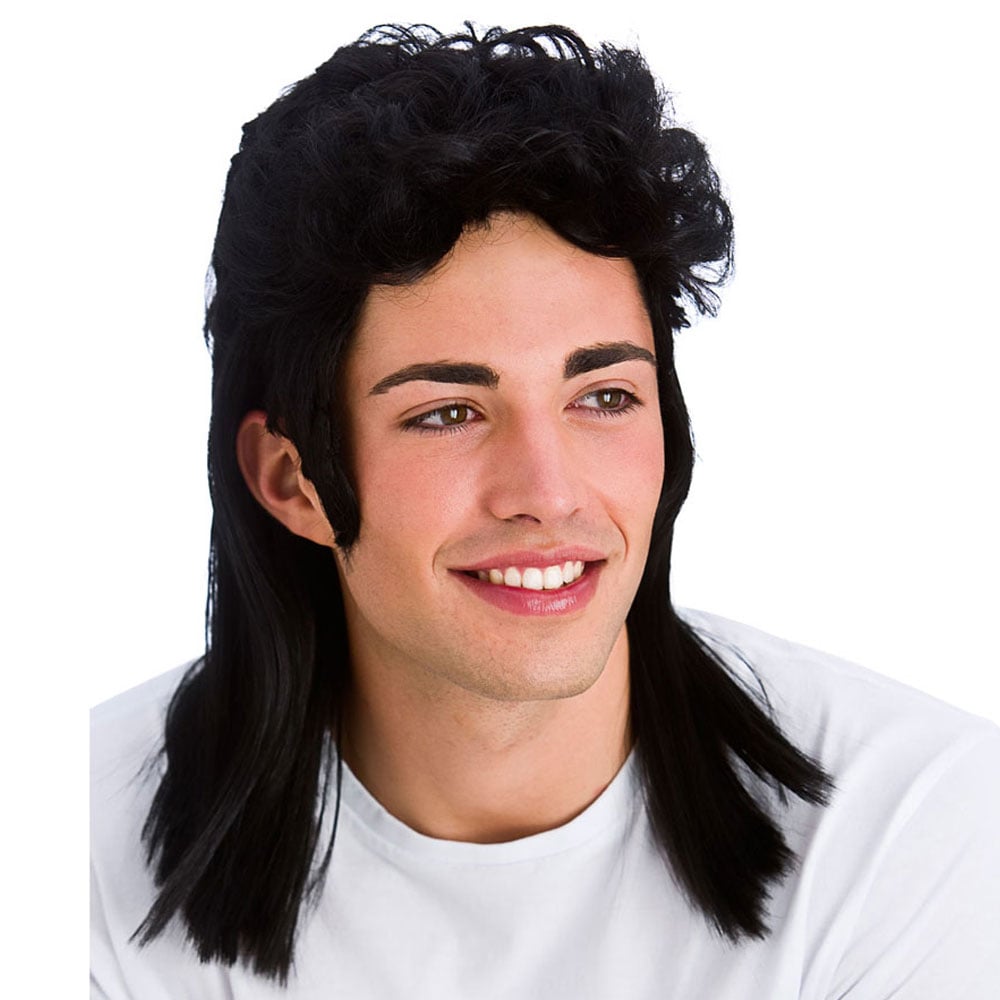 80-tals Hockeyfrilla Peruk Svart