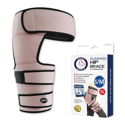 Dr. Arthritis Läkare utformade, högra höftstöd – Inguinal stöd för ischiasnerv – kompressionslårband (storlek S/M, rosa)