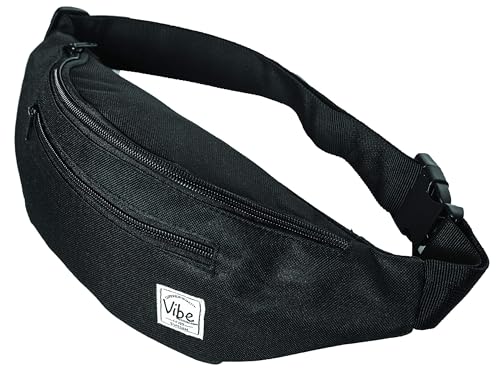 Vibe Midjeväska, bältesväska för kvinnor, män och barn – Pack-väska, höftväska, mobilväska för festival, fest, rave, sport, utomhus, fitness, cykel och jogging, svart, Einheitsgröße