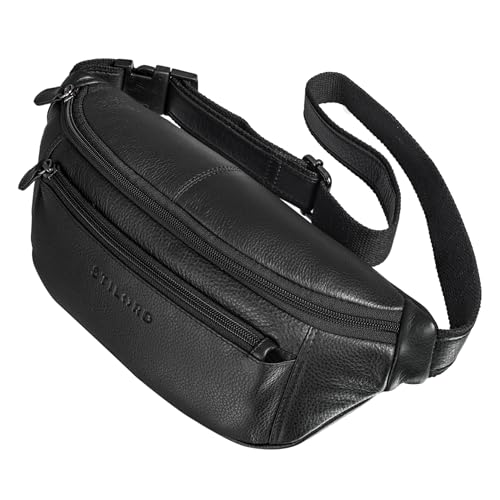 STILORD "Bryce" midjeväska läder bälte väska dam herr retro höftväska resväska semester jogging festival äkta läder Farbe:Svart