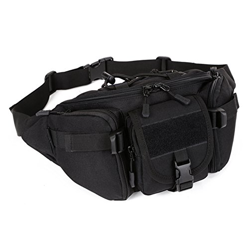 Huntvp® Taktisk midjeväska sport höftväska molle midjeväska vattenavvisande med dragkedja för utomhus löpning resor vandring cykling camping, svart-L
