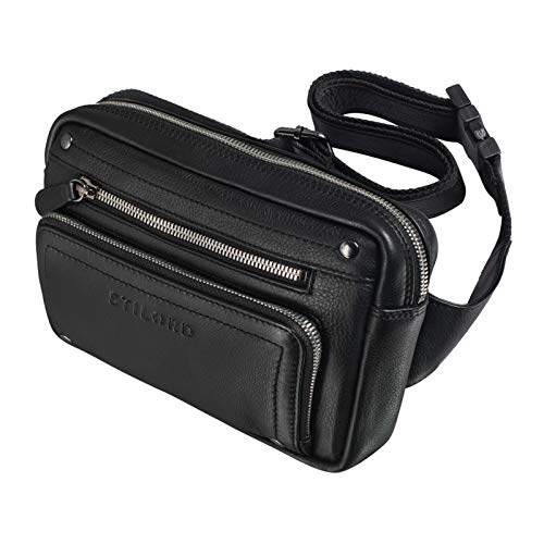 STILORD "Maverick" läder midjeväska bältesväska axelväska höftväska kameraväska mobilväska resa festival trekking damer herrar mjukt läder Farbe:Svart