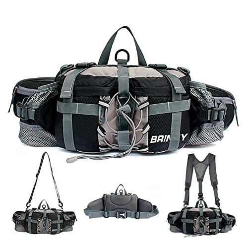 Brinny Multifunktionell bältesväska med 2 flaskhållare ryggsäck axelväska dryckesbälte midjeväska militärstil mobilfack vattentät löpbälte höftväska för vandring resor camping cykling