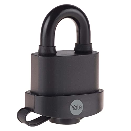 YALE Y220B/51/118/3, svarta väderbeständiga hänglås med skyddskåpa (51 mm) - utomhus härdat stålbygellås för skjul, grind, kedja - med nyckel - HÖG säkerhet