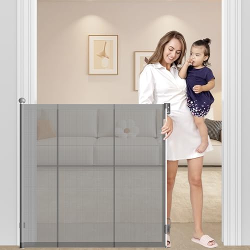 HOMGEN Hållbar infällbar trappgrind för barn 180 cm med handtag lätt att installera infällbar grind för hundar hög 86 cm rivsäker infällbar grind -grå