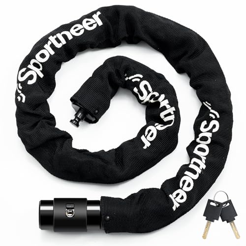 Sportneer Cykelkedjelås tungt cykellås 8 mm diameter tjock hög säkerhet stöldskyddscyklås oskärbara bärbara med 2 nycklar för skoter, cykel, motorcykel, dörr, grind, staket, grill