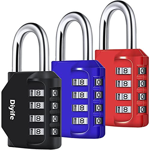 Diyife 4-Siffrigt Kombinationslås, [2 PCS] [Vattentät] Väderbeständigt Metall Hänglås, Hög Säkerhet Pläterade Stållås för Skola, Gymskåp, Garage, Grind, Haspskåp och Förvaring - Svart & Silver & Röd