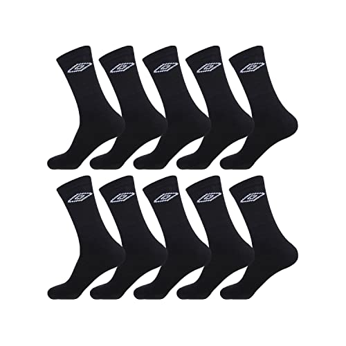 Umbro Vävda sportstrumpor för män med kuddar - set med 10 stycken - höga strumpor för män, tennis, ventilerande, svart, 43/46 EU