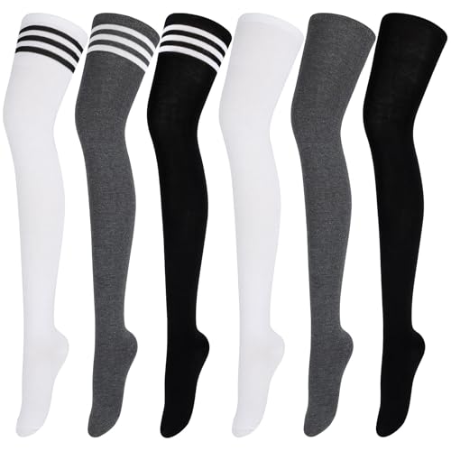 DRESHOW 6 Par Långa Strumpor Lårhöga Strumpor Strumpbyxor Över Knä Strumpor Casual Höga Strumpor för Flickor och Kvinnor
