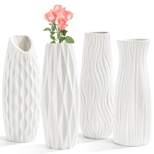 Peohud 4-pack vita keramiska vaser, 23 cm höga blomvaser för heminredning, modern minimalistisk blommig vas för bordshylla sovrum kök vardagsrum bordsuppsatser