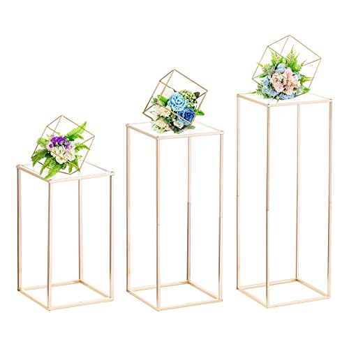 Nuptio Guldvas för Bröllopsmynt med Akrylpanel - 3 Stycken Höga Vaser för Blommor Metallpelare Blomställ Geometriskt Mittställe för Födelsedagsfest Heminredning(40cm/60cm/80cm)
