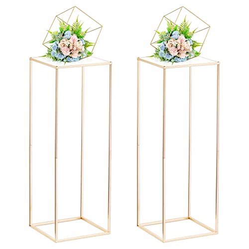 Nuptio Höga Guldvaser Centerpieces - 2 Stycken 100cm Höga Blomvaser Metall Golv Vaser Kolonn Geometriska Bröllop Centerpieces Står Rektangulära för Bröllop Födelsedagsfest Dekorationer
