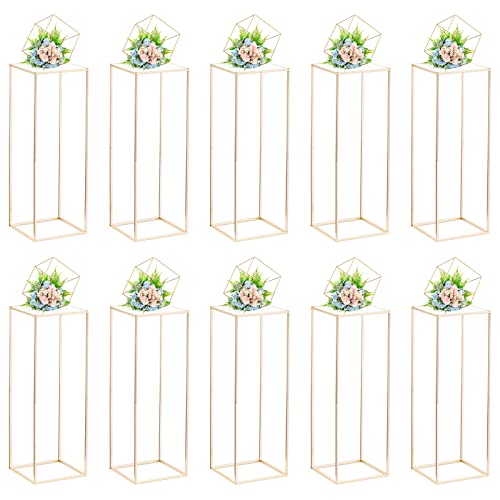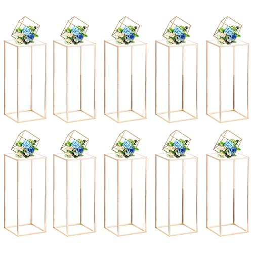 Nuptio Guldvaser för Bröllopscenterpieces med Akrylpanel - 10 St 60cm Höga Metallblommor Vaser Blommor Stå för Festbord Elegant Bröllop Centerpieces Dekoration Geometrisk Kolonn Display Stativ