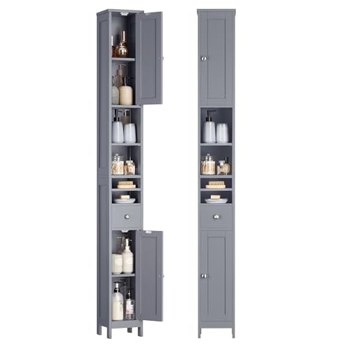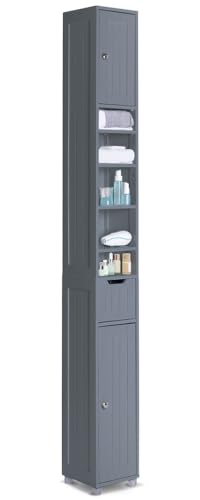 VOUNOT Badrumskolonn, badrumsskåp, högt badrumsskåp med 2 dörrar och 1 låda, 20 x 20 x 180 cm, grå