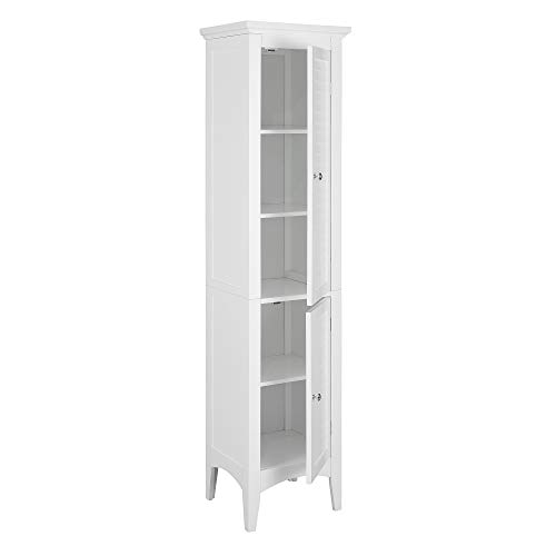 Teamson Home Fristående Linne förvaringsskåp, högt badrumsskåp, trä badrumsförvaring, 2 Louvred dörrar, 5 hyllor, vit, Glance-kollektion