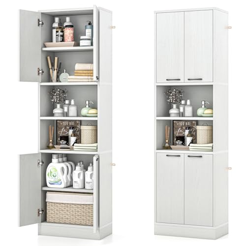 FirFurd Högt badrumsskåp, badrumsskåp, högskåp för badrum, arbetsrum, multifunktionsskåp, köksskåp med 4 dörrar och badrumshylla, trä, 180,5 x 60 x 40 cm (vit)