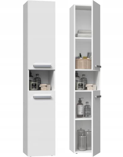 SONNI Badrumsskåp högt skåp badrum badrumsmöbler badrumsskåp smal vit högglans 30 cm bred hängande
