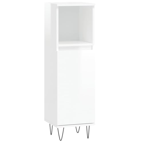 vidaXL Badrumsskåp vit högglans 30x30x100 cm konstruerat trä, badrumsmöbler, toalettskåp, högt badrumsskåp, badrumsenhet, badrumsförvaringsskåp