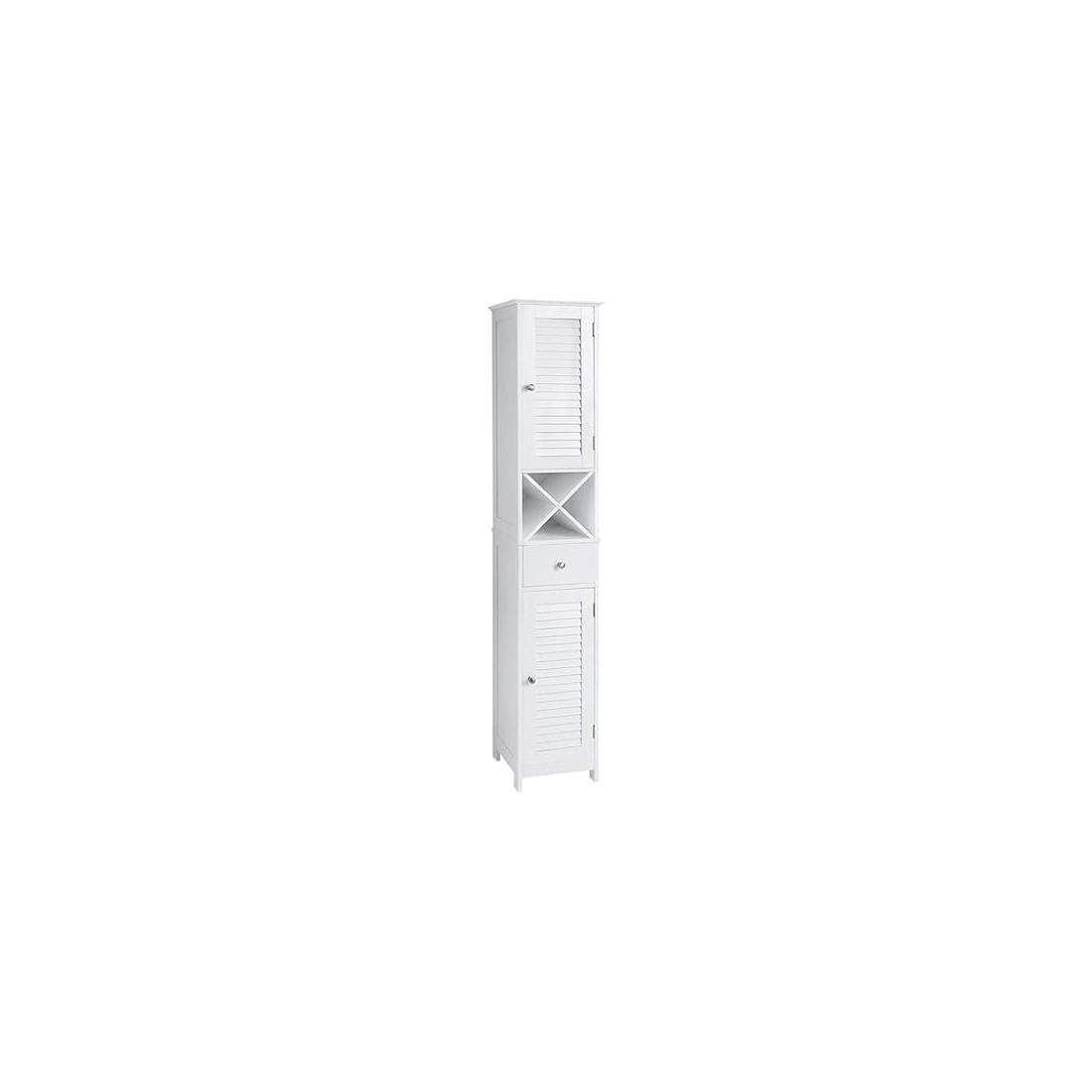 Högt badrumsskåp – justerbara hyllor, låda, 2 dörrar