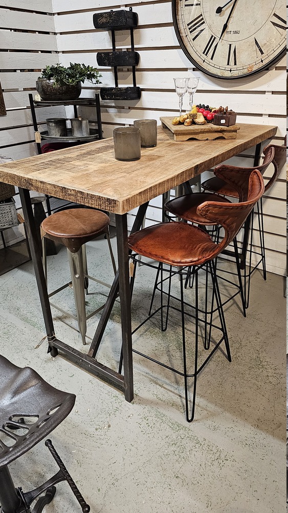 VASAGLE Barbordmetall, Matbord, Köksbord, Stabilt Högt Bord, 120 X 60 X 90 Cm, För 4 Personer, Enkel Montering, Bar, Vardagsrum, Matsal, Industriell Design, Vintage Brunsvart LBT91X