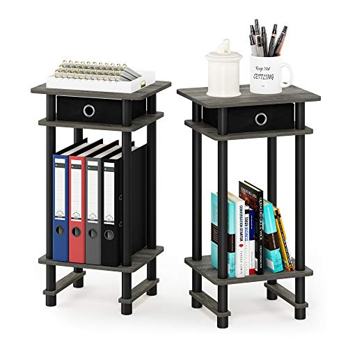 Furinno Turn-N-Tube 2-pack högt bord, sidobord med fack, fransk ek grå/svart