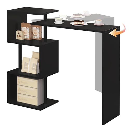 WOLTU barbord BT27sz högt bord bistro bord bardiskbord, med 3 hyllor, vridbart, metall, MDF, 134x38x112cm(BxDxH), svart