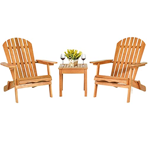 COSTWAY Fällbara Adirondack-stolar med bord, uppsättning av 2 Adirondack-stolar av eukalyptusträ, trädgårdsfåtölj med högt ryggstöd och breda armstöd för trädgård, balkong, terrass, 180 kg