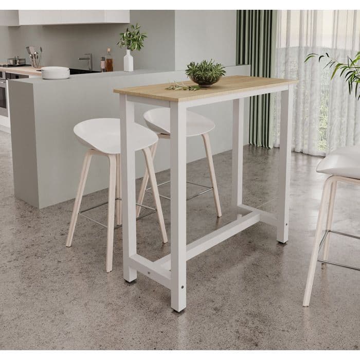 Högt barbord | 140 x 100 x 40 cm | Färg Vit och Sonoma | Kök bord för 2 personer | Modell Ani