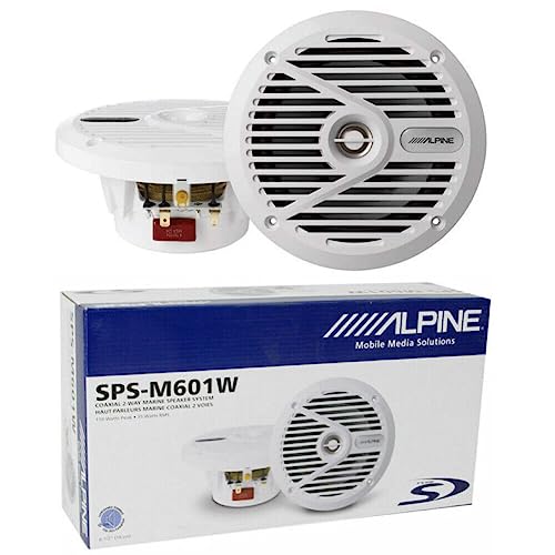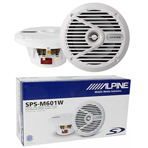 SATSET FÖR ALPINE SPS-M601W 2 vita 2-vägs koaxial marina högtalare 16,5 cm 165 mm 6,5" vattentät vattentät 35 watt rms 110 watt max 4 ohm, poolbåt hav, per par