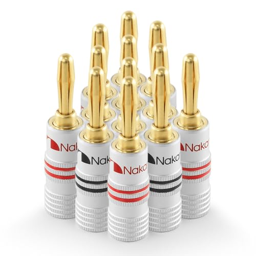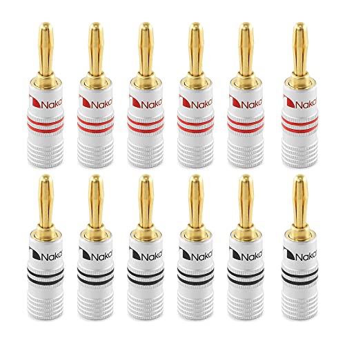 Nakamichi Excel Series 24K guldpläterade bananplugg Högtalarkontakter 12 AWG - 18 AWG Mått 4 mm för högtalare hemmabio ljudmottagare förstärkare och ljudsystem 12 st (6-par)