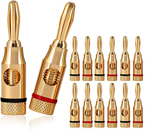 Gebildet 12 st guldpläterade högtalare bananpluggar (6 st röd och 6 st svart), stängd skruvtyp, för högtalarsladd, hemmabio, väggplattor och mer