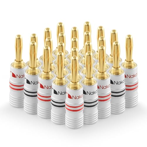 Nakamichi Excel Series 24K guldpläterade bananplugg Högtalarkontakter 12 AWG - 18 AWG Mått 4 mm för högtalare hemmabio ljudmottagare förstärkare och ljudsystem 24 st (12 par)