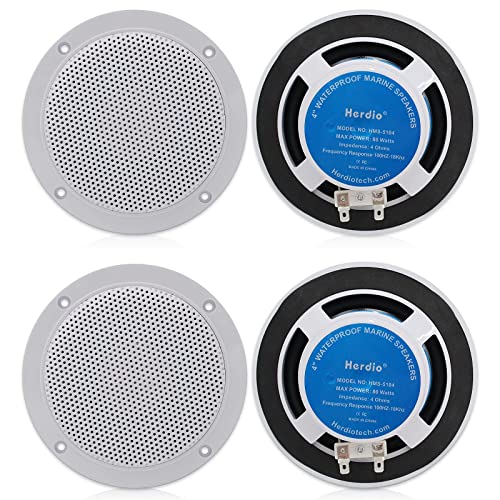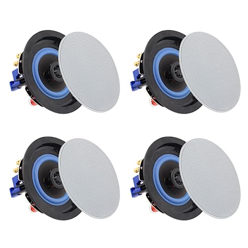 Herdio 10 cm (4 tum) 320 W takhögtalare, 2-vägs infällda takhögtalare för badrum kök hemmabio, verandor, kompatibel med Bluetooth, vit (4 högtalare)