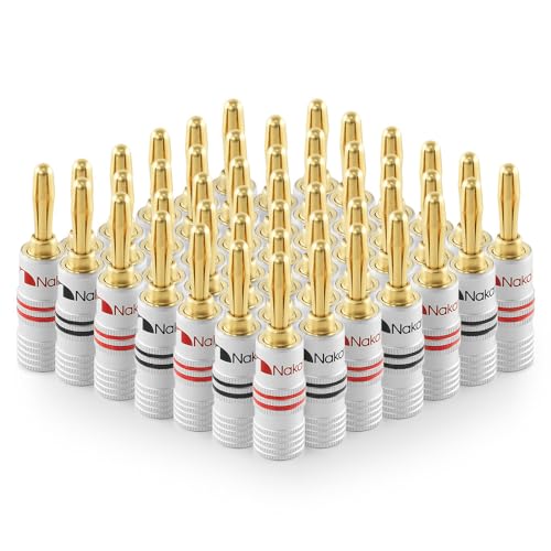 Nakamichi Excel Series 24K guldpläterade bananplugg Högtalarkontakter 12 AWG - 18 AWG Mått 4 mm för högtalare hemmabio ljudmottagare förstärkare och ljudsystem 36 st (18 par)