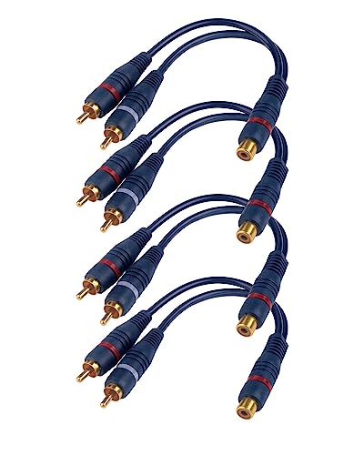 BRIEFCEC RCA Splitterkabel, 15 cm RCA Y-kabel, AV-kabel, 1 RCA hona till 2 RCA hane RCA förlängningskabel RCA till JACK för subwoofer, högtalare, AMP, skivspelare, mottagare, hemmabio (Y-kabel, 4 st, blå)