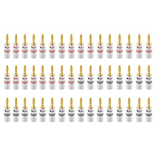 Nakamichi Excel Series 24K guldpläterade bananplugg Högtalarkontakter 12 AWG - 18 AWG Gauge Storlek 4 mm för högtalare Hemmabio Ljudmottagare Förstärkare och ljudsystem 48 st (24 par)