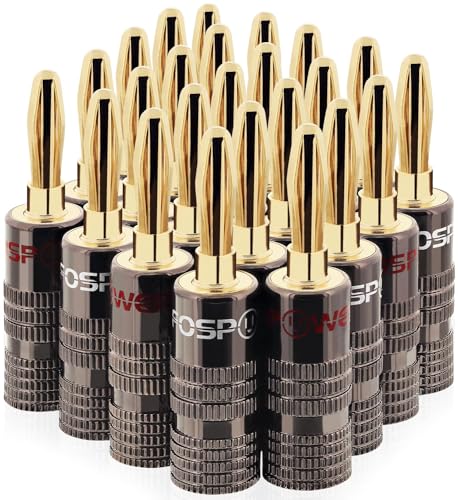 FosPower Banankontakter 12 par/24 st, stängd skruv 24K guldpläterade banankontakt-anslutningar till högtalare för högtalarsladd, vägguttag, hemmabio, ljud-/videomottagare, förstärkare och ljudsystem