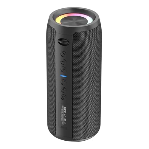 HEYSONG Bärbar trådlös Bluetooth-högtalare Vattentät RGB LED-ljus True Wireless Stereo, kraftfull bas med högt trovärdigt ljud, högtalare med mikro-SD, USB-minne, 3,5 mm uttag, typ C-laddning