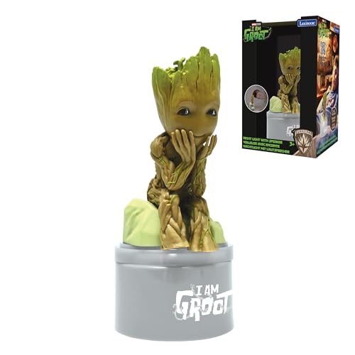Lexibook, Marvel Guardians of the Galaxy, Groot Nattlampa med högtalare för barnrummet, mjukt ljus, batteridriven, grå/brun, NS01GG