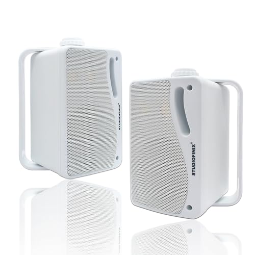 STUDIOFINIX 8,5 cm utomhus Bluetooth-högtalare, 3-vägs 200 W uppgradering, premium väggmonterade högtalare, idealisk för uteplats och inomhus (vit)