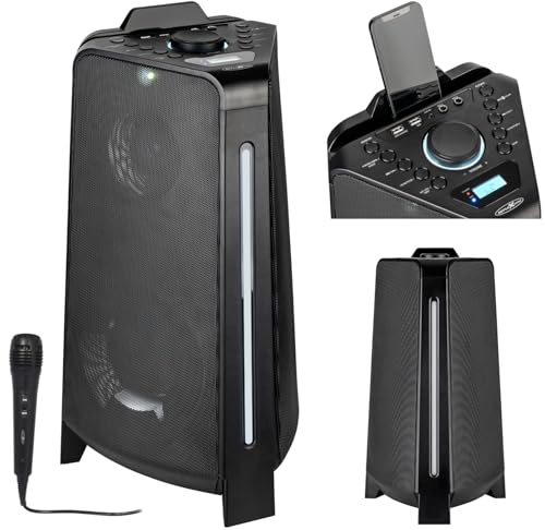 Pyle Bärbar Sono-högtalare, 300 W bärbar bluetooth-högtalare, utomhus och inomhus, karaoke högtalare med flerfärgade LED-lampor, subwoofer, mikrofon, USB-ingångar, MP3, FM-radio, fjärrkontroll