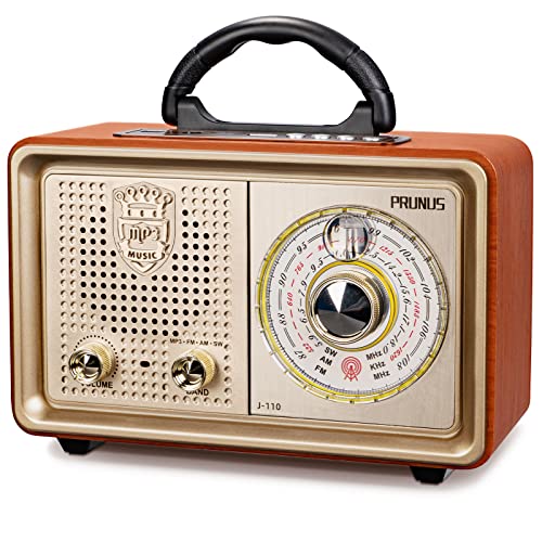 PRUNUS J-120 Bärbar Radio Retro, SW AM FM Radio Med Bluetooth Högtalare, Drivs Av 1800mAh Uppladdningsbart Batteri Eller Nätadapter, Vintage Radio Stödjer AUX TF USB Uppspelning