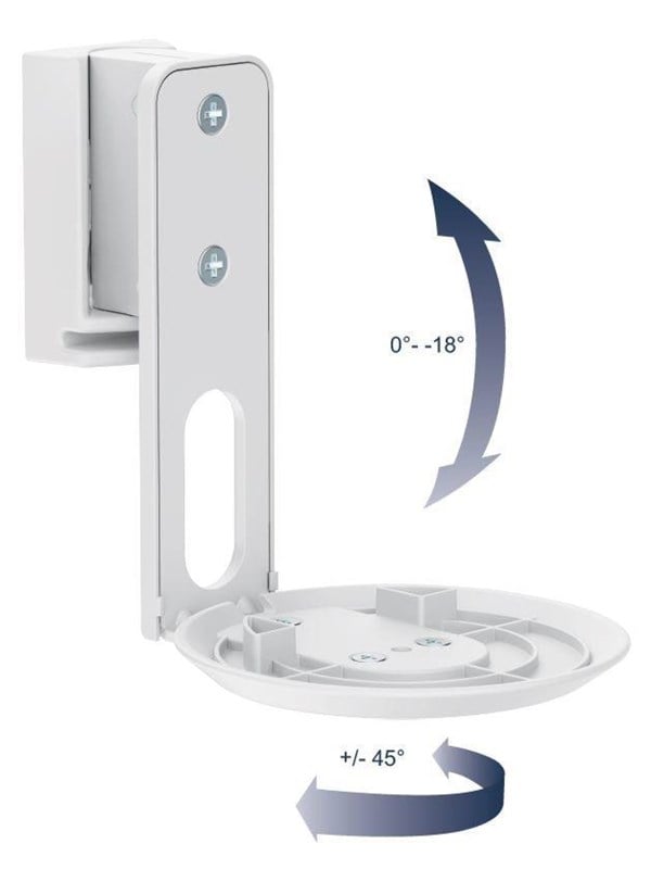 PureMounts Högtalarfäste för Sonos Era 100, väggfäste för högtalare med kabelhantering, vridbar +/-45°, lutbar 0/-18°, 3 kg lastkraft, vit